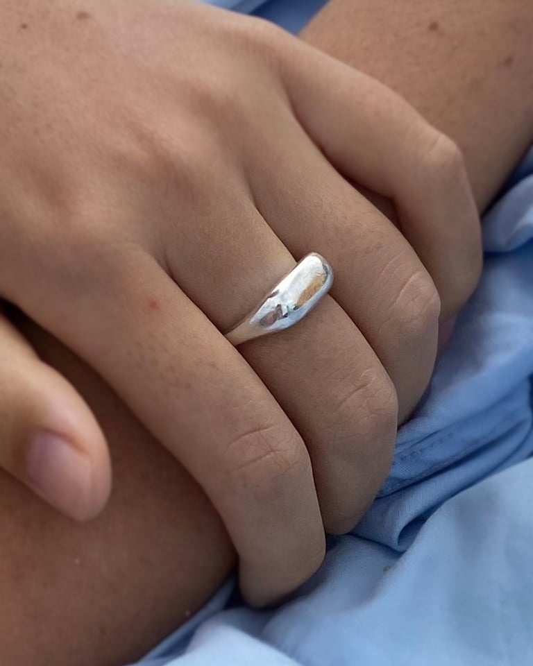 A smooth, bulbous and weighty ring. Timless in shape, can be worn stacked or on its own.