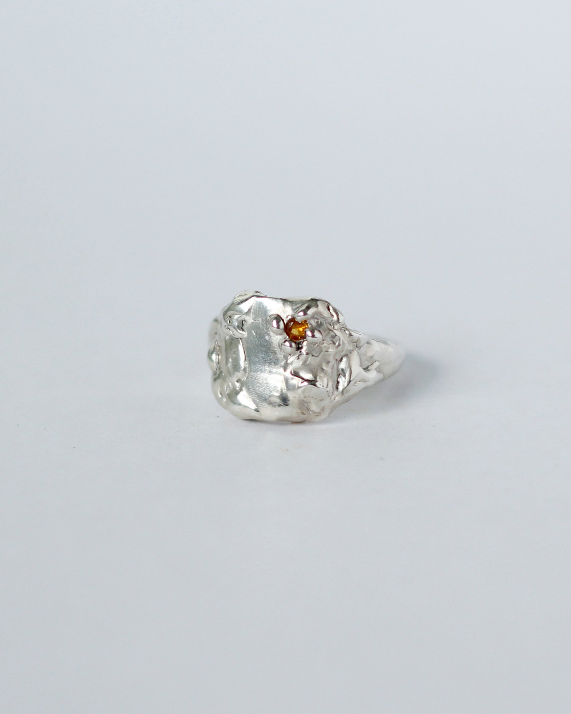 A slumpy take on the classic signet ring—customisable with a blue, yellow, orange, emerald or ruby gemstone (please add note at checkout).